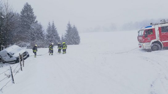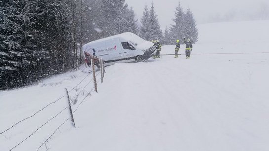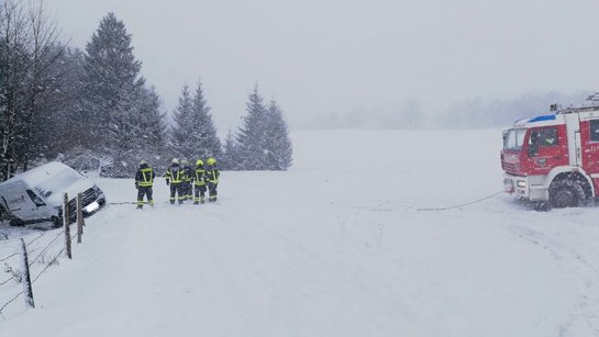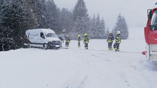 Am 11. Februar wurden wir erneut zu einer Fahrzeugbergung bei winterlichen Bedingungen alarmiert. Ein Kleintransporter blieb auf einer schneebedeckten Fahrbahn hängen, kam rückwärts ins Rutschen und in weiterer Folge im Straßengraben zum Stehen.