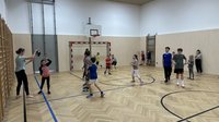 Die Kinder und Jugendlichen hatten die Aufgabe, gemeinsam einen kreativen Gymnastik-Parcours zu entwerfen und aufzubauen. Hier war nicht nur Fantasie, sondern auch Kommunikation und Kooperation gefragt. Beim anschließenden Pärchen-Merkball wurden Teams gebildet, in denen die „Großen“ und „Kleinen“ zusammenarbeiten mussten, um erfolgreich zu sein.